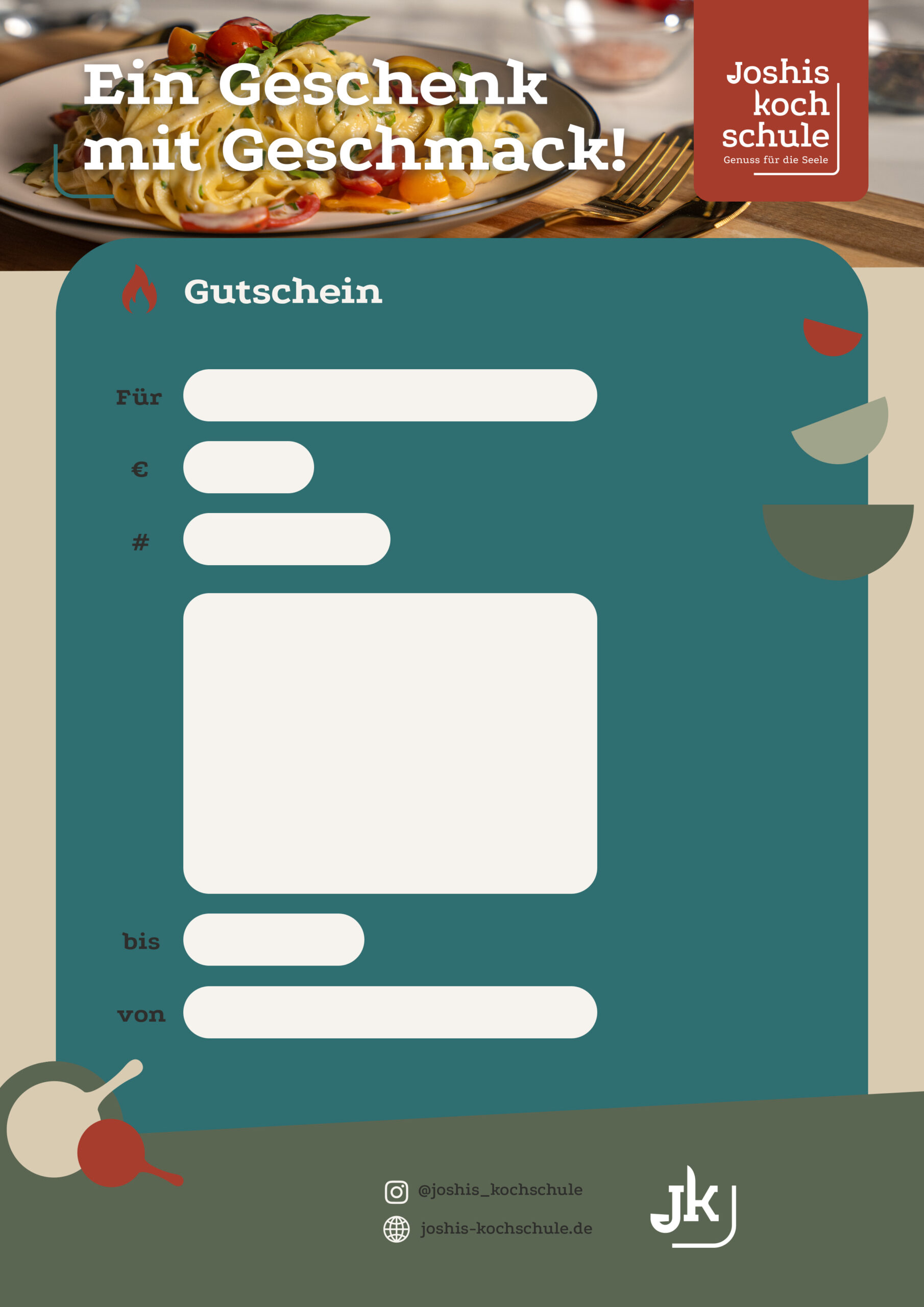 Der Gutschein ist flexibel für alle Kurse einlösbar und kommt nach dem Bezahlvorgang direkt als PDF direkt per Mail. Wähle einen typischen Kursbetrag, etwas dazwischen oder einen Freibetrag aus und trag ein, von wem und für wen der Gutschein ist, wenn du willst – musst du aber nicht, wenn du lieber später auf dem Ausdruck Dinge eintragen möchtest.